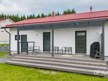 Kiva ja tilava katettu terassi sekä tasainen piha perheen yhteiseen oleskeluun. Tontti on oma ja rakennusoikeuttakin löytyy vielä vaikkapa piharakennukselle! Autolle löytyy oma katos ja varastotilaa erilisen varaston turvin.