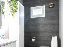Pesutilojen varusteet: Suihku ja lattialämmitys. Erillisten WC:n lukumäärä: 1. Erillisen WC:n varusteet: WC-istuin, lattialämmitys, bidee-suihku, allaskaappi ja peili.