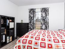 Laatta, vinyyli ja yhdessä makuuhuoneessa lattiassa laatta, lopuissa vinyyli