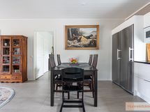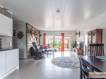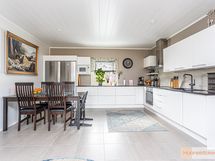 Talon sydän on avara olohuone, joka yhdistyy saumattomasti tyylikkääseen keittiöön. Keittiössä on laadukkaat kivitasot sekä nykyaikaiset kodinkoneet, kuten induktioliesi ja erillinen jääkaappi sekä pakastin. Neljä makuuhuonetta tarjoavat runsaasti tilaa perheen tarpeisiin ja kodinhoitohuone omalla uloskäynnillä tekee arjesta sujuvaa.
