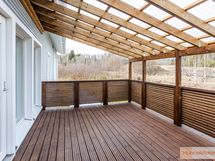 Katettu terassi takapihan puolella.