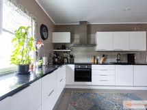Keittiön varusteet: Jääkaappi (Pystymalli), astianpesukone, erillinen pakastin (Pystymalli), mikroaaltouuni, liesituuletin ja erillisuuni. Liesi: Induktioliesi. Työtason materiaali: Kivi.