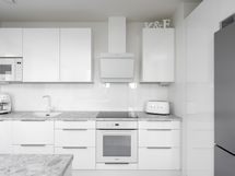 - Liesi: induktio. Työtasot: laminaatti. Kylmäsäilytys: jääkaappi/pakastin. Varustus: liesituuletin, mikroaaltouuni, astianpesukone, irralliset saarekkeet. Uusittu v 2020 keittiökalusteet (Novart) ja koneet (Miele), uusi vinyylilankku lattiaan ja seinäpinnat maalattu.
