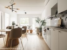 5-kerroksiseen taloyhtiöön valmistui helmikuun lopulla kaikkiaan 29 kpl A-energialuokan viihtyisää kotia kooltaan 35,5–89,5 m² huipputehokkaista kaksioista aina tilaviin kolmen makuuhuoneen asuntoihin. Kaikissa huolellisesti suunnitelluissa, valoisissa kodeissa on todella tilava parveke sekä nykyaikainen keittotila Puustellin kaapistojen, induktioliesitason, kalusteuunin ja astianpesukoneen kera. Useimmissa kodeissa on ikioma sauna.