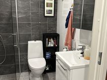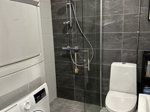- Suihku, Suihkuseinä, Pesukonevalmius, Peilikaappi, Allaskaappi, Laattalattia, Laattaseinä, Lattialämmitys