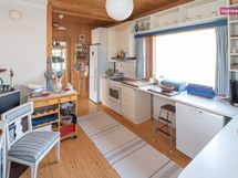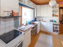 - Keittiön varusteet: Jääkaappipakastin, uuni, liesi, liesituuletin ja astianpesukone. Liesi: Keraaminen liesi. Työtason materiaali: Laminaatti.