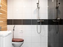 - Pesutilojen varusteet: WC-istuin, suihku, peilikaappi, bidee-suihku, pesuallas, allaskaappi ja pesukoneliitäntä.