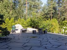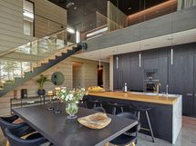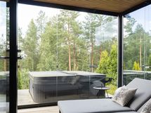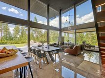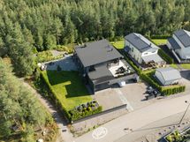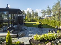 Eteisaula johdattaa avaraan olohuoneeseen, jossa lattiasta kattoon ulottuvat ikkunapinnat tuovat luonnonvalon ja vehreän pihamaiseman upeasti sisätiloihin. Scavolinin keittiö on saanut seurakseen tilavan saarekkeen ja Gaggenaun kodinkoneet, tarjoten mainiot puitteet vaativaankin makuun. Olohuoneen jatkeena toimii lasitettu terassi ja spa-henkisen kylpyhuoneen yhteyteen sijoittuvat tilava sauna sekä ulkoporeallas. Makuuhuoneet löytyvät ylä- ja alakerrasta, jonka lisäksi toiminnallisuutta lisäävät kolme erillistä wc:tä, tv- ja kodinhoitohuone sekä hyvin varusteltu kuntosali. Talon tilaratkaisuja voi tarvittaessa muokata myös lapsiperheen tarpeisiin. Rakennusoikeutta on jäljellä n. 100m2.