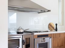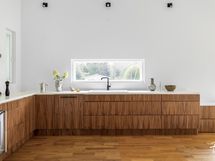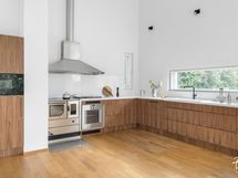 - Liesi: induktio, puuliesi, erillisuuni. Kylmäsäilytys: jääkaappi, pakastin. Varustus: astianpesukone, liesituuletin / hormi. Moderni avokeittiö, jossa on runsaasti työ- ja laskutilaa, sijaitsee suuren olohuoneen jatkona. Keittiö on kattavasti koneellistettu mm. Mielen ja Gaggenaun konein. Keittiön ja olohuoneen väliin jää hyvin tilaa suurelle ruokapöydälle.
