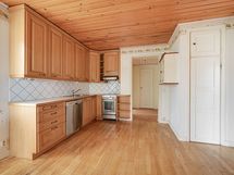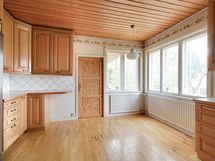 Sisätiloissa tunnelma on lämmin ja kutsuva. Kauniit alkuperäiset lautalattiat, viehättävä kaakeliuuni ja perinteinen pohjaratkaisu tuovat kotiin ajattoman ilmeen. Ruokailutila sijaitsee käytännöllisesti keittiön vieressä, ja tilaa riittää hyvin suuremmankin perheen tarpeisiin.