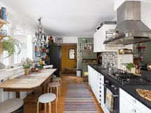 - Liesi: kaasu, erillisuuni. Työtasot: laminaatti. Kylmäsäilytys: jääkaappi/pakastin. Varustus: astianpesukone, liesituuletin / hormi.