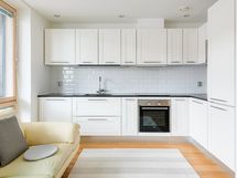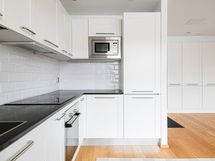 - Keittiön varusteet: Jääkaappipakastin (integroitu), erillisuuni, liesituuletin, mikroaaltouuni (integroitu) ja astianpesukone (integroitu). Liesi: Keraaminen liesi. Työtason materiaali: Kvartsikomposiitti.
