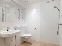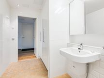 - Pesutilojen varusteet: WC-istuin, suihku, suihkuseinä, lattialämmitys, pesukoneliitäntä, peilikaappi, pesukone, kuivausrumpu, pesuallas ja allaskaappi.