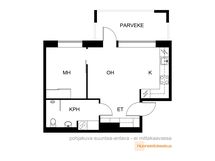 - 1 h, tupakeittiö, kph + lasitettu parveke