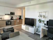 - Keittiön varusteet: Jääkaappipakastin, erillisuuni, astianpesukone ja liesituuletin (Liesikupu). Liesi: Induktioliesi. Työtason materiaali: Laminaatti.