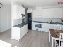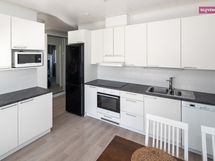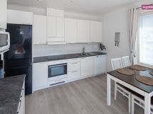 - Keittiön varusteet: Liesi, uuni (kiertoilma), liesituuletin, astianpesukone ja jääkaappipakastin. Liesi: Keraaminen liesi. Työtason materiaali: Laminaatti.