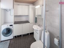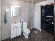- Pesutilojen varusteet: WC-istuin, suihku, suihkuseinä, pesukoneliitäntä, lattialämmitys, pesuallas, allaskaappi, bidee-suihku ja peilikaappi.