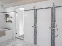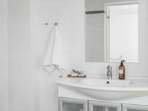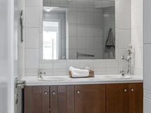 - Suihku, Suihkuseinä, Useita suihkuja, Kylpyamme, Pesukone, Kuivauskaappi, Kuivausrumpu, Laattalattia, Allaskaappi, Laattaseinä, Halogeenivalot, Erillinen WC, Lattialämmitys, Kylpyhuoneet keskikerroksessa ja alakerrassa. Alakerran kylpyhuoneessa on kylpyamme.