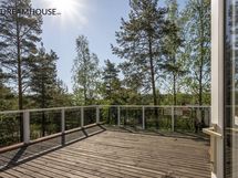 - Iso parveke ylimmässä kerroksessa, näköala talojen yli merelle