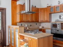 - Liesi: kaasu, keraaminen, erillisuuni. Työtasot: puu. Kylmäsäilytys: jääkaappi/pakastin. Varustus: liesituuletin, astianpesukone. Siistikuntoinen keittiö josta on pääsy terassille. Terassilta osittainen merinäköala.