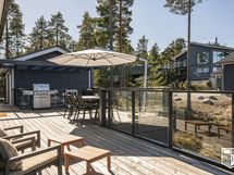 - Varusteet: sähkökiuas. IKI-pilarikiuas. Ikkuna. Lasiseinä. Seinät ja katto paneloitu, lattia laattaa.