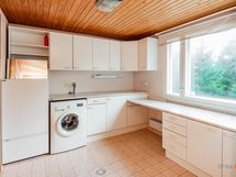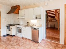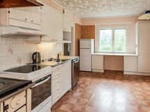 - Jenkkikaappi, keraaminen liesi, astianpesukone, kaapistot, kiinteät valaisimet, pöytätasojen materiaali Laminaatti/teräs. Puuhella keittiössä. Leivinuuni/takka olohuoneen puolella.