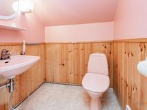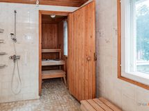 - Sauna, sähkökiuas talon saunassa, puukiuas Pihasaunarakennuksessa on puulämmitteinen kiuas, kylpyhuone, erillinen wc 2 kpl, suihku, peilikaappi, pesukoneliitäntä, lattialämmitys ei ole käytetty lattialämmitystä nyt, kun ei ole asuttu., kiinteät valaisimet.