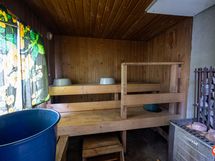 - Kylpyhuone, erillinen wc ; ei pesuallasta eikä vesipistettä, suihku, suihkukaappi, peilikaappi, allaskaappi, pesukoneliitäntä, lattialämmitys, kiinteät valaisimet. Pihasaunarakennus, jossa puulämmitteinen kiuas.