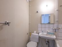 - Kylpyhuone, suihku, amme, pesukoneliitäntä, kiinteät valaisimet. WC pytty vaihdetaan yhtiön toimesta.