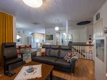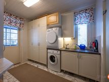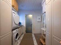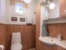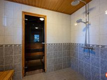 - Sauna, sähkökiuas 6 kW, uusittu, kylpyhuone, erillinen wc 2 kpl, alakerrassa wc istuin varastotilassa, suihku, peilikaappi wc, kaapit, allaskaappi, pesukoneliitäntä, lattialämmitys, kiinteät valaisimet. Lauteet ja kiuas uusittu sekä pesuhuoneen ja saunan ovi.