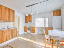 - Jääkaappi, pakastekaappi, sähköliesi, liesituuletin, pöytätasojen materiaali Laminaatti.