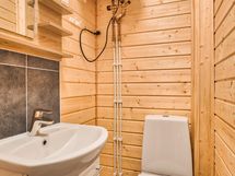 - Sauna, sähkökiuas, kylpyhuone, erillinen wc, suihku, peilit, allaskaappi, pesukoneliitäntä, lattialämmitys.