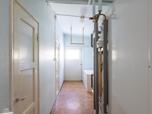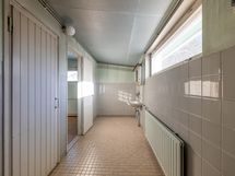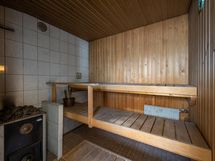 - Sauna, puukiuas, kylpyhuone, erillinen wc, suihku, peilit, peilikaappi, pesukoneliitäntä, lattialämmitys, kiinteät valaisimet. Saunan seinärakenteessa sekä saunan ja pukuhuoneen/kodinhoitotilan seinärakenteessa todettu kosteusvaurio kuntotarkastuksen yhteydessä; pesuhuone- ja saunatilat remontoitava nykymääräysten mukaisesti.