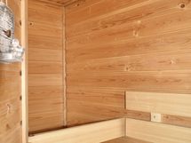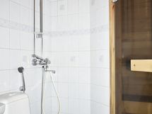 - Kylpyhuone, suihku, sähkösauna, peilikaappi. Lattia: Laatta