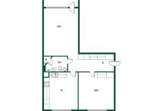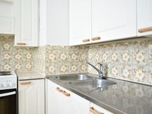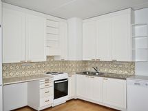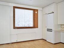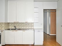 - Kaapistot, jääkaappi/pakastin, sähköliesi, astianpesukone. Lattia: Parketti