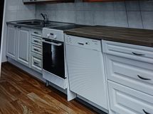 Paljon kaappitilaa, Paljon työskentelytilaa, Suuri tiskipöytä, Puutasot, Astianpesukone, Induktioliesi, Jääkaappi, Pakastin