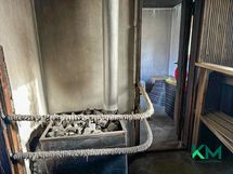 Talossa on takka ja pönttöuunit, jotka tuovat tunnelmaa ja lämmittävät sähköllä toimivan peruslämmityksen rinnalla.