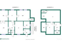 Kahdessa asunnossa on yhteensä noin 136m2 asuintilaa; suurempi asunto kattaa neljä huonetta, keittiön, sekä rakentamattoman vintin ja pienempi asunto talon päädyssä on tilava yksiö!