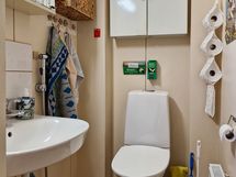 - Kylpyhuone, pesukoneliitäntä, lattialämmitys, erillinen wcx2, puusauna. Lattia: Laatta