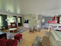 - Liesi: leivinuuni, induktio. Työtasot: kivi. Kylmäsäilytys: jääkaappi, pakastin. Varustus: astianpesukone, liesituuletin / hormi.