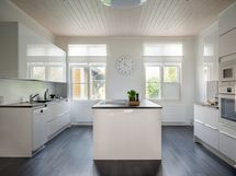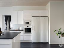 - Liesi: induktio, erillisuuni. Työtasot: laminaatti. Kylmäsäilytys: jääkaappi, pakastin. Varustus: liesituuletin, mikroaaltouuni, astianpesukone, kiinteät valaisimet. jääkaappi, kaapistot, sähköliesi, liesituuletin, leivinuuni, mikroaaltouuni, astianpesukone. Remontoitu 2020-2023