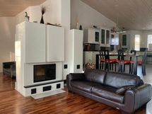 Kodin sydämessä on lämpöä varaava takka, joka luo tunnelmaa ja lämpöä kylminä talvi-iltoina. Lisäksi talo on varustettu ilmalämpöpumpulla. Avarat ja korkeat huoneet täyttyvät luonnonvalosta, mikä tekee kodista erityisen valoisan ja ilmavan.