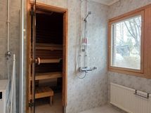 Lattia: Keittiössä: parketti. Pesutiloissa: laatta. Olohuoneessa: parketti. Makuuhuoneessa: laminaatti. Saunassa: laatta. Seinät: Pesutiloissa: kaakeli. Olohuoneessa: maalattu, tapetti. Makuuhuoneessa: tapetti. Saunassa: puu.