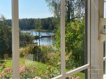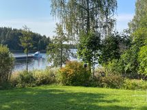 - Kuvaus: Kiuas uusittu 2024. Maisema järvelle. puukiuas