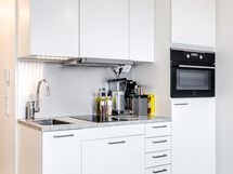 - KAAPISTO/Novart Petra: valkoiset sileät ovet. KONEET/integroitu kalusteeseen: keraaminen induktioliesitaso, yhdistelmäuuni, jääkaappi pakastelokerolla, liesituuletin. TYÖTASO: laminaatti, harmaa, Betonivalu. KALUSTEVÄLITILA: laminaatti, Alumiini. ALLAS: 1-altainen teräsallas.
