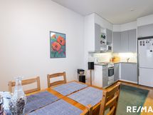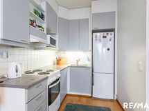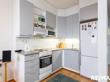 - Työtason materiaali: Laminaatti. Tupakeittiössä jääkaappi/pakastin, liesituuletin, sähköliesi.