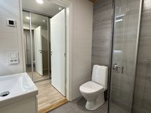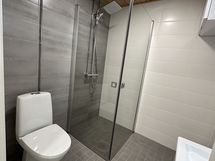 Suihku, Pesukone, Peilikaappi, Allaskaappi, Rättipatteri, Laattalattia, Lattialämmitys