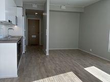 Avoin ja valoisa huoneisto Moderni keittiö, jossa laadukkaat kodinkoneet Tyylikäs kylpyhuone Eteisessä hyvin säilytystilaa