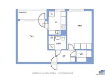 - Varustus: suihkuseinä, pesukoneliitäntä, lattialämmitys, wc-istuin, suihku, peilikaappi, kylpyhuonekaapisto.