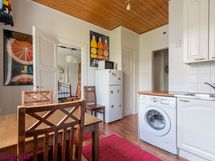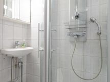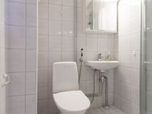 - Varustus: suihkuseinä, pesukone, wc-istuin, peilikaappi, kiinteät valaisimet.